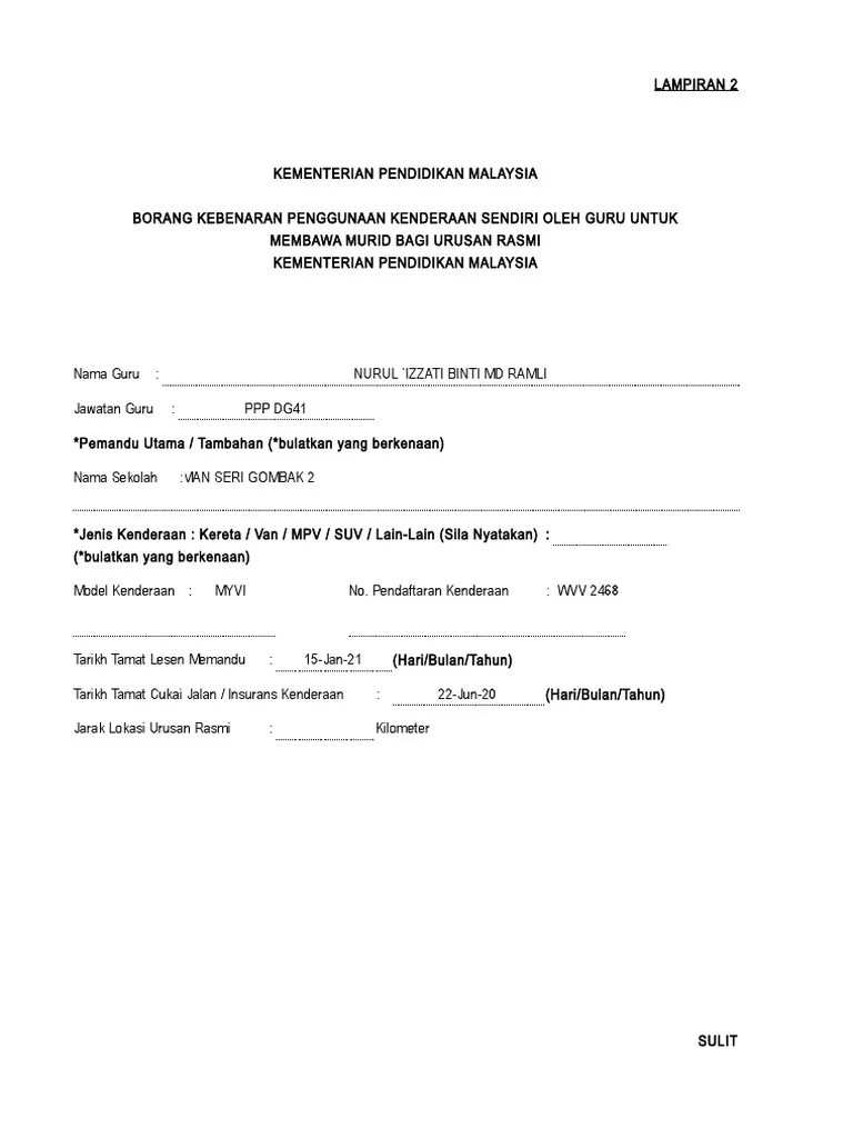 Permohonan menggunakan kenderaan sendiri docx borang kebenaran menggunakan kenderaan sendiri melebihi 240km sop guna kenderaan sendiri bawa murid untuk urusan rasmi mengikut spi bil …